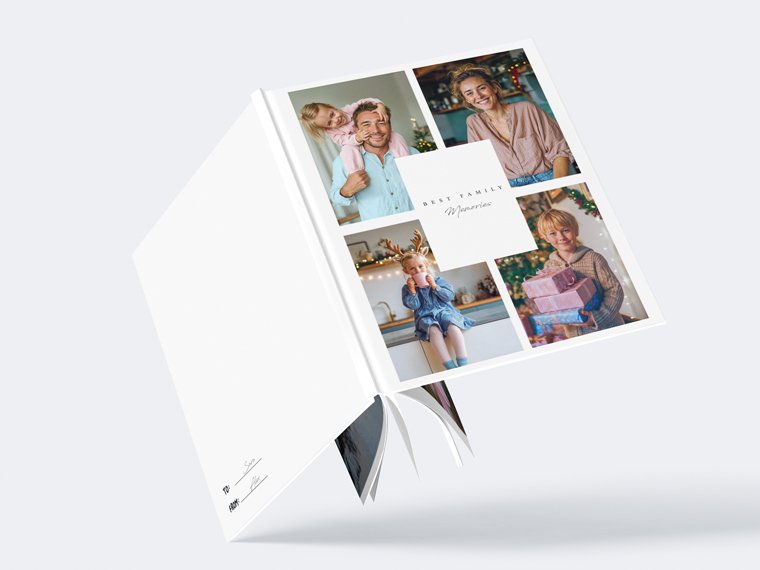 Livre photo avec ouverture à plat et impression sur véritable papier photo, brillant ou mat.